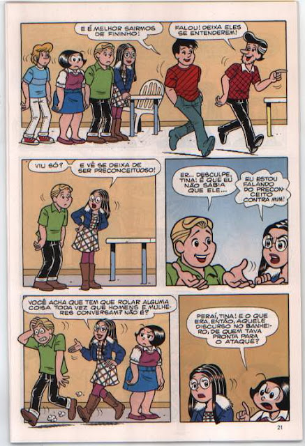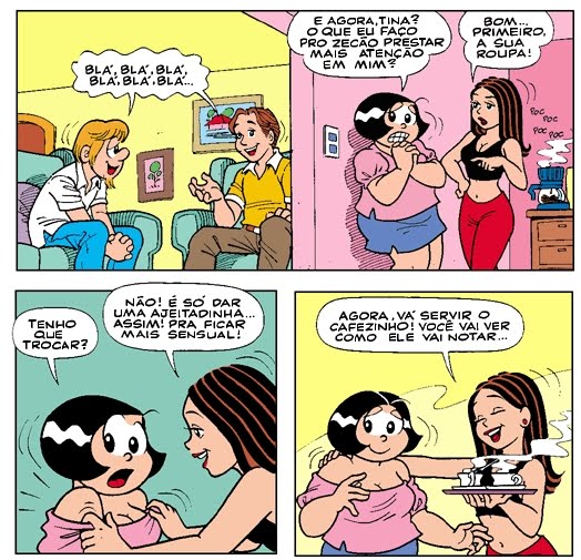 Além desta abertura ao homossexualismo, nota-se também a presença de sensualidade nas histórias infantis. Veja abaixo um trecho também da personagem Tina: